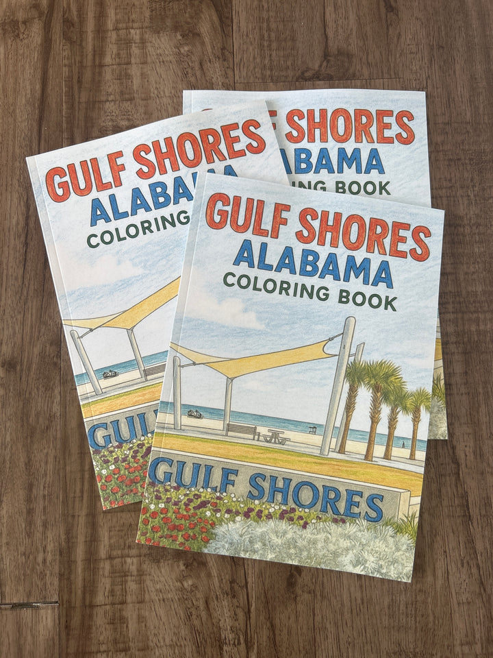 "Discover the beauty and charm of Gulf Shores through this fun and relaxing coloring book! Perfect for kids and adults alike, this book features hand-drawn illustrations of iconic scenes and beloved landmarks from Alabama’s Gulf Coast. From sugar-white beaches, playful dolphins, and fishing piers to vibrant beachside wildlife, and colorful sunsets over the Gulf, each page invites you to bring the coastal magic to life with your favorite colors. Whether you’re a local, a visitor, or a beach lover at heart, this book offers a creative escape to one of the South’s most treasured seaside destinations." -Gulf Coast Crawls