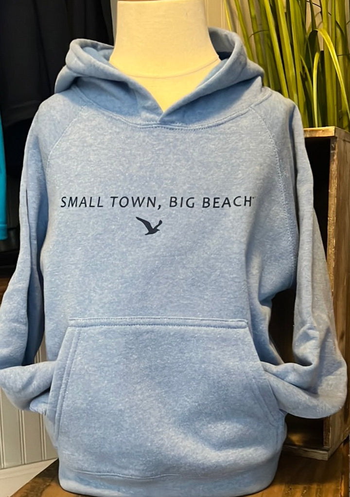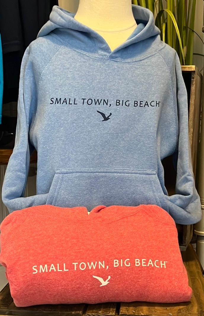 Keep your little one warm and beach-ready with our Youth Hooded Sweatshirt! Made from a soft, plush fleece, this comfy pullover is perfect for cool mornings, chilly evenings, and everything in-between. The colors add a fun pop, while the simple coastal graphic keeps it classic. Snuggly, durable, and full of small-town charm, this hoodie will be their new go-to layer all year long!